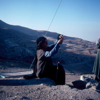 Jordan. Wadi Isal, Kathrabha (?), woman winding wool