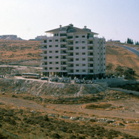 Jordan. Amman, refugees at Condo. across field, view from ACOR
