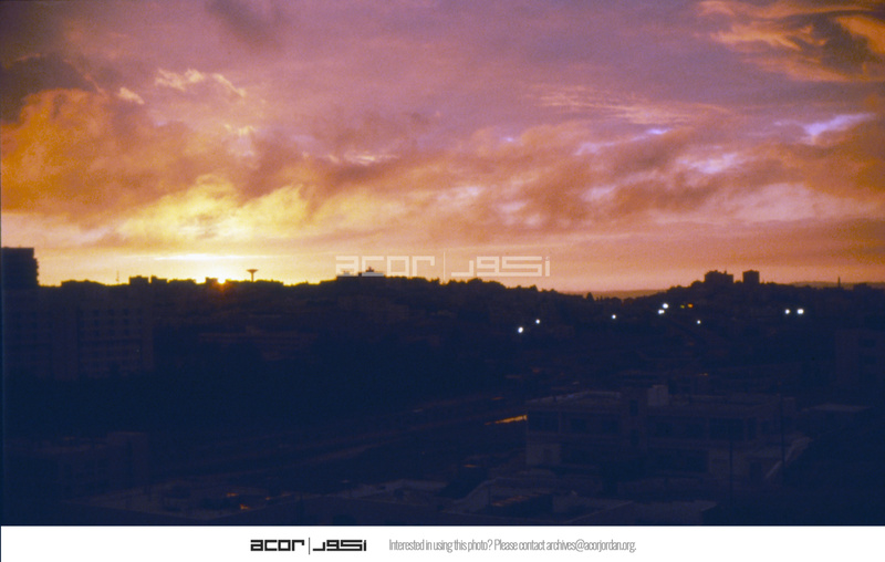 Jordan. Amman, American Center of Oriental Research (ACOR), sunrise over Amman