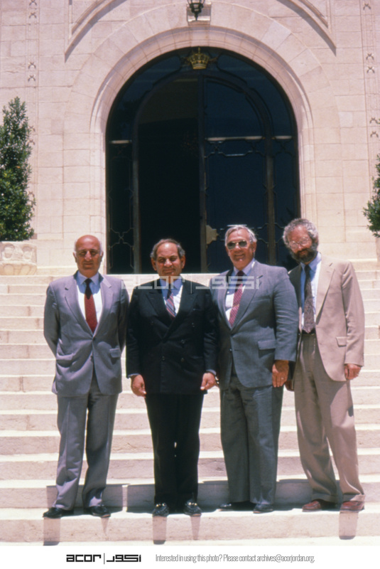 Jordan. Mohammed Asfour, Prince Ra'ad, Robert Coughenour, Bert DeVries in front of Royal Palace