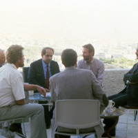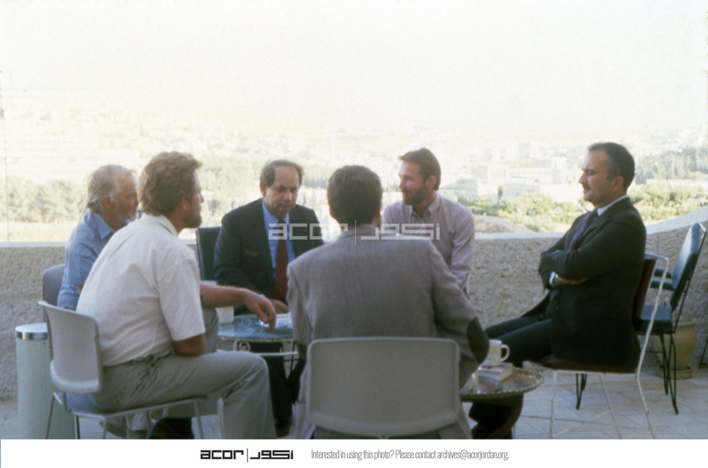 Jordan. Jack Lee, Don Whitcomb, Prince Ra'ad, Emir Hassan on ACOR Director's balcony