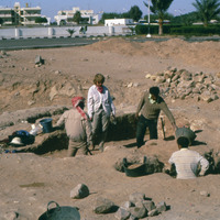 Jordan. Aqaba, Andrea Lain excavates interior of south tower of Egypt gate