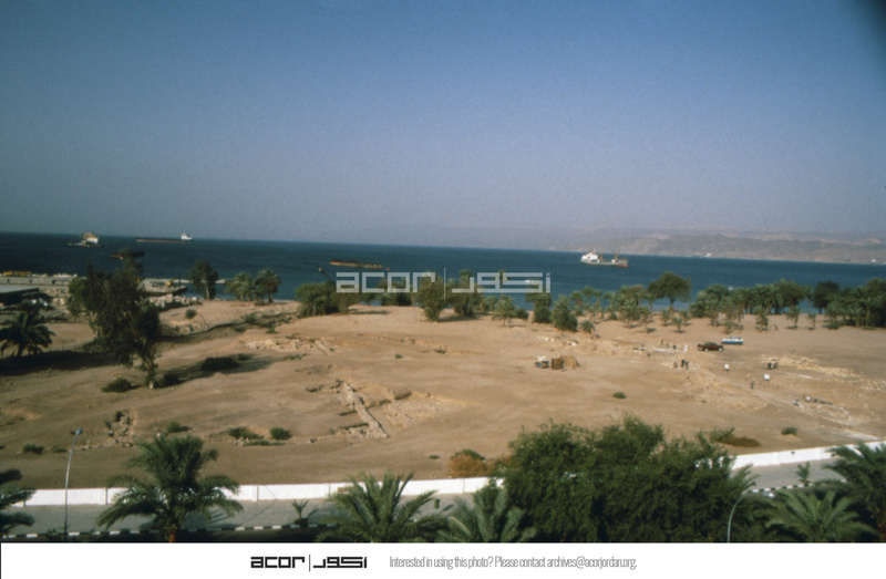 Jordan. Aqaba, overview of Ayla showing restoration activity on west ramparts
