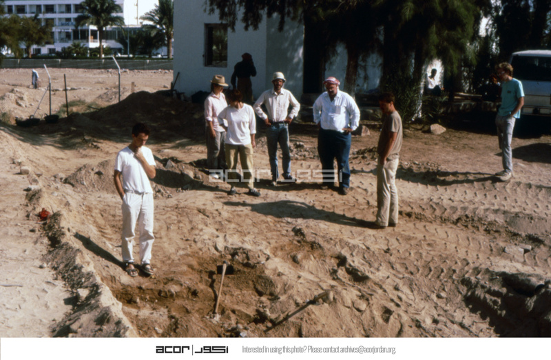 Jordan. Aqaba, excavation begins after bulldozing of army barracks; Don Whitcomb wears red keffiyeh