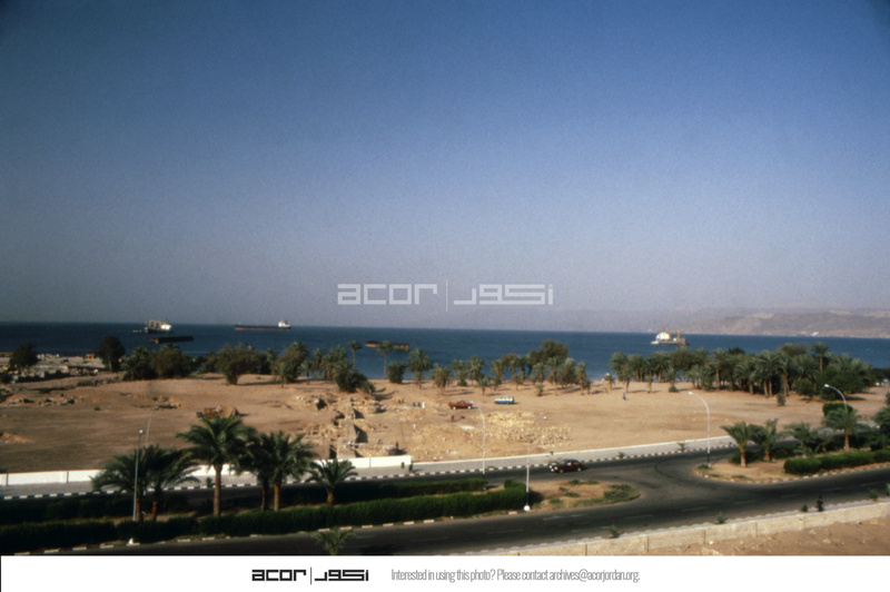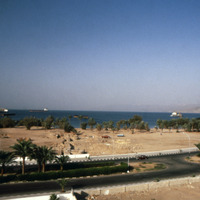 Jordan. Aqaba, overview of site panning from east to west from roof of hotel