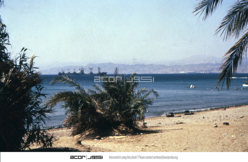 Jordan. Aqaba, beach seen from southwest corner of ramparts