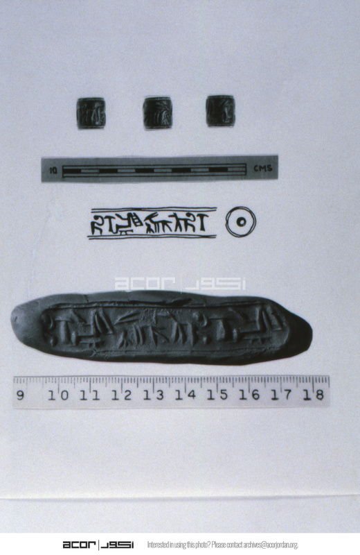 Jordan. Bab edh-Dhra‘, drawing of object #2823, cylinder seal in Egyptian adaptation of Mesopotamian design, probably early Bronze Age II