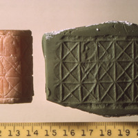 Jordan. Bab edh-Dhra‘ town site, Field XIX, cylinder seal with possible human design