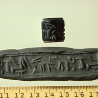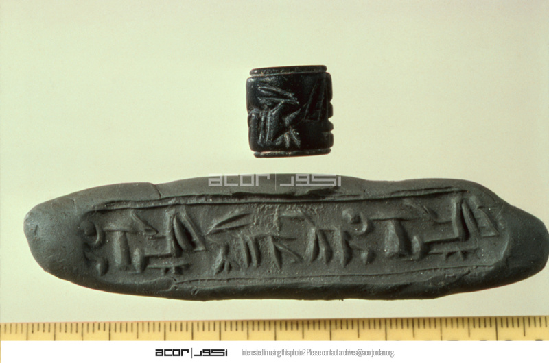 Jordan. Bab edh-Dhra‘ town site, Field XVII, cylinder seal and impression. Egyptian adaptation of Mesopotamian style, probably early Bronze Age II