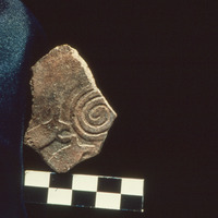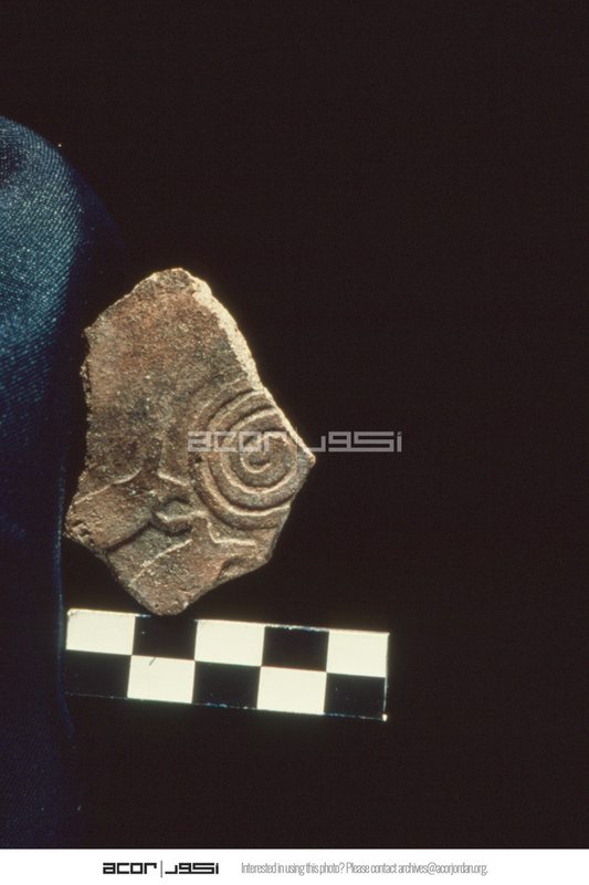 Jordan. Bab edh-Dhra‘ town site, Field XVI, impressed stamp design with distinctive spirals and figures from sanctuary area