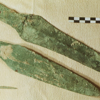 Jordan. Bab edh-Dhra‘ town site, Field XVI, copper blades. Possibly from destruction of city