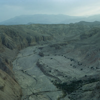Jordan. Bab edh-Dhra‘ town site, Field XVI, looking east up Wadi Karak from field