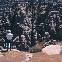 Jordan. Dana Forest, cliffs across gorge at western extent of foot paths