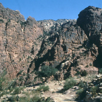 Jordan. Wadi Dana, cliffs on north bank, below Dana Forest