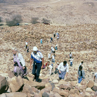 Jordan. Feinan, Friends of Archaeology climbing Khirbet Feinan