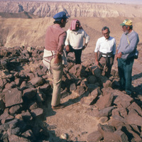 Jordan. Wadi Khanazir, close up of structure in 450, Walter Rast left,Tom Schaub right, Nabil Bega'in, Ghazi Bisheh (white shirt-DOA)
