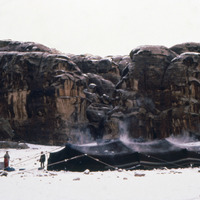 Jordan. Petra, Siq el Barid / Little Petra, Bedouin tent in snow