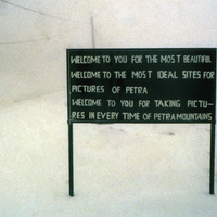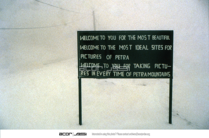 Jordan. Petra, 'Welcome to Petra' sign, in snow