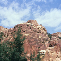 Jordan. Petra, view towards High Place, note 'fort' on peak