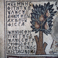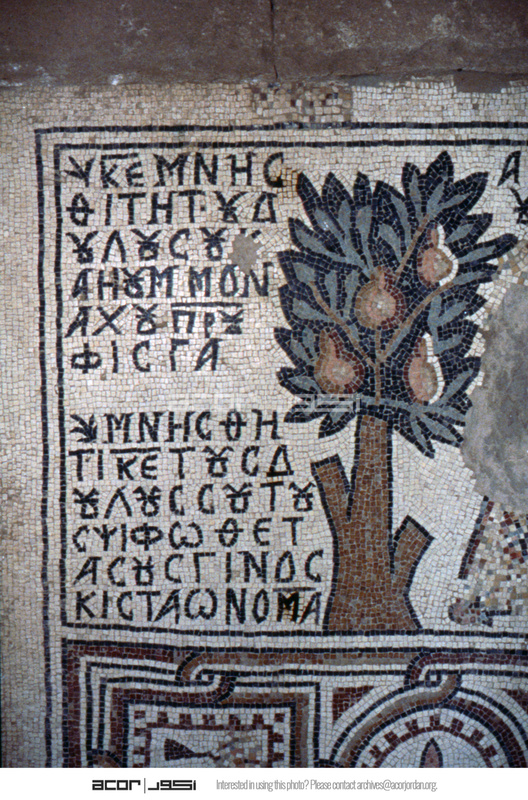 Jordan. Umm ar-Rasas (Castron Mefa'a), the mosaic floor of the Church of Bishop Sergius. inscription