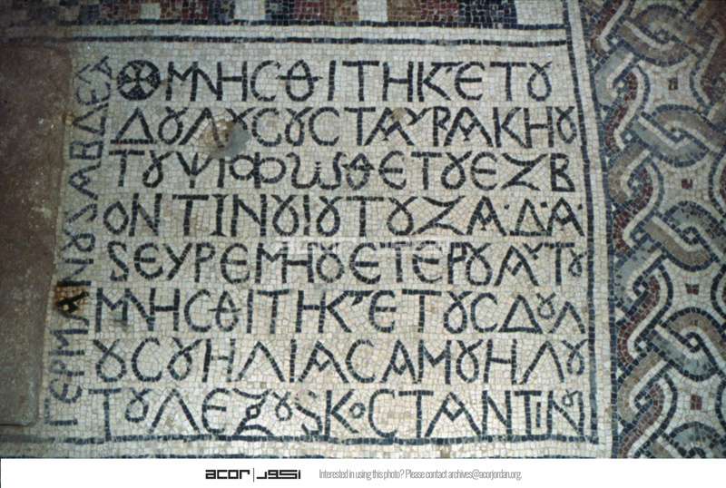 Jordan. Umm ar-Rasas (Castron Mefa'a), Church of St. Stephen, mosaic floor, inscription