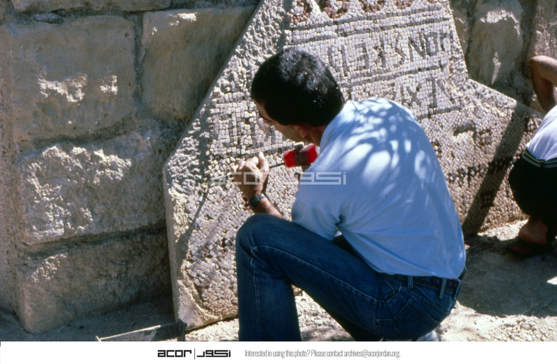 Jordan. Mount Nebo, Italian specialist restoring mosaic panel