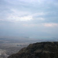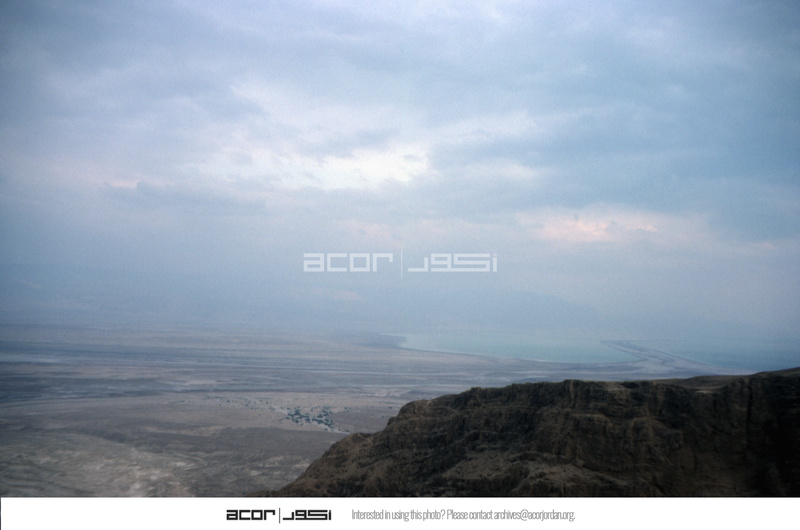 Jordan. Bab edh-Dhra', view across Dead Sea from Masada