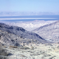 Jordan. Bab edh-Dhra', on way to site. Lisan Peninsula visible in background