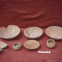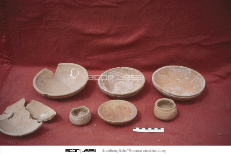 Jordan. Bab edh-Dhra' cemetery, roadside trench tomb pottery photographed at Karak. Bowls 53, 55, 18 (back) and 31, 03, 05, 52, 57 (front)