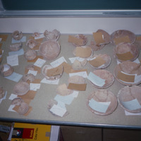 Jordan. Bab edh-Dhra' cemetery, roadside trench tomb. Reconstructed pottery study at Pittsburgh Theological Seminary, bowls and jugs