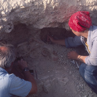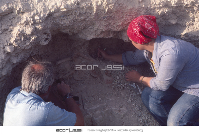 Jordan. Bab edh-Dhra' cemetery, roadside trench tomb. Michael Finnegan and Liza excavating
