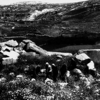 Jordan. Iraq al-Amir, local workers excavating square II.1 in Qasr al-Abd