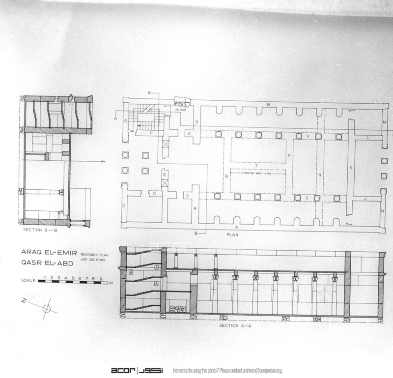 Jordan. Iraq al-Amir, plans of Qasr al-Abd as imagined restored