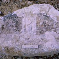 Jordan. Bab edh-Dhra', Cemetery A, Tomb A76E. One of stones blocking the tomb entrance, from bottom of pile