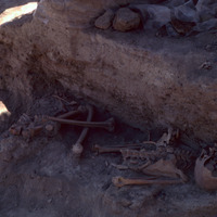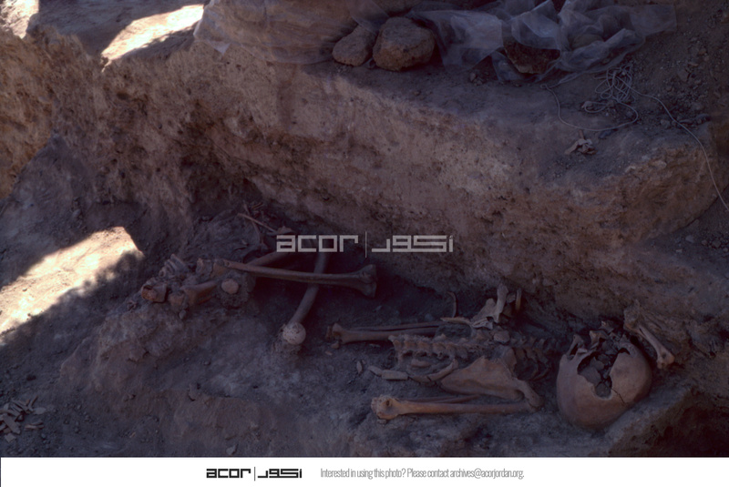Jordan. Bab edh-Dhra', Cemetery A, Charnel House A22. Articulated burial on shelf in C
