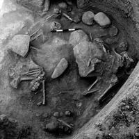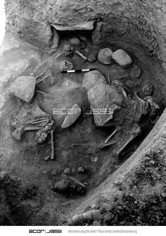 Jordan. Bab edh-Dhra', Cemetery A, Tomb A4. Look down shaft at burials and pottery