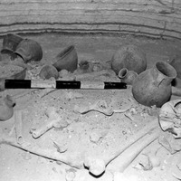 Jordan. Bab edh-Dhra', tomb chamber with pottery and bones