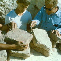 Jordan. Bab edh-Dhra', charnel house or town site bricks with Paul Lapp (right) and Awni al-Dajani (left)