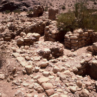 Beidha: The excavated Stone Age village of Beidha, one kilometer south west of Siq al-Barid, Beidha,the white one' in Arabic, dates from the period at the end of the Stone Age known as the Neolithic era, when people in the Near East making the slow, gradual transition from small groups of nomadic hunter-gatherers to settled villagers who domesticated animals and cultivated plants. It was excavated by Mrs. Diana Kirkbride. (Khouri, R. "Petra: a guide to the capital of the Nabataeans" 1986)