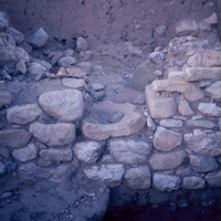 Jordan. Petra, Beidha (archaeological site) grinding stone in wall