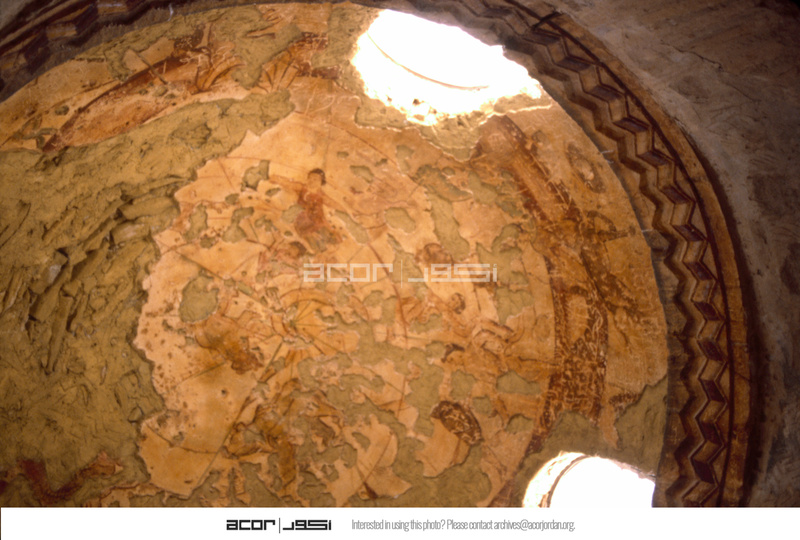 Jordan. Qasr Amra, general view of the dome of the second "caldarium" with a representation of the heavens and the Zodiac