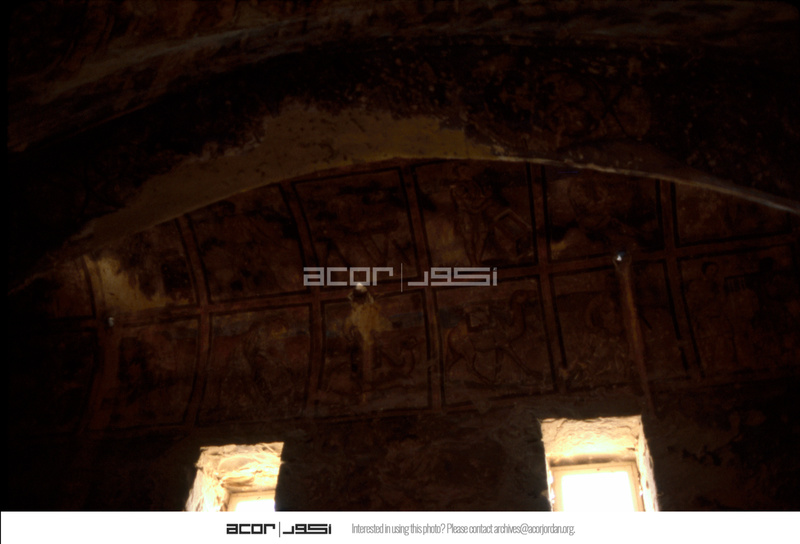 Jordan. Qasr Amra, the decoration of this aisle is completed with the caissons which show craftsman's scenes: stonemasons, carpenters, blacksmiths and masons, representing the different stages of the construction of a building