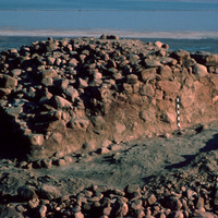 Jordan. Numeira, 'tower' exterior wall face after excavation