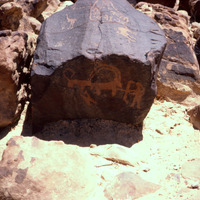 Oxen, hunting scene, and dogs depicted. The age of rock art like this can be determined with an instrument which measures the patina (Nancy Lapp notes)