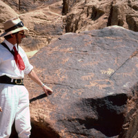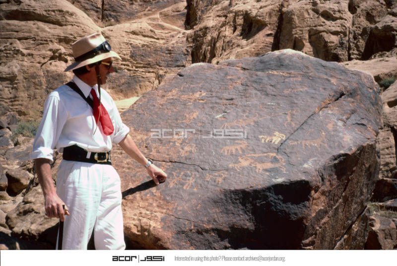 Jordan. Wadi Rum. Wadi Disi, Eduardo Borzatti von Lowenstern and rock drawings