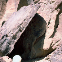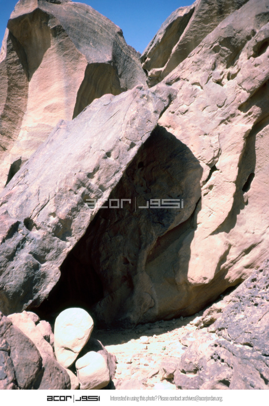 Jordan. Wadi Rum. Wadi Disi, Jabal Amud. Rock shelter entrance