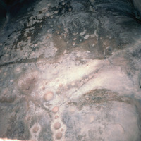 Jordan. Wadi Rum. Wadi Disi, Jabal Amud. Rock shelter with drawings, possibly a map