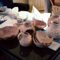Jordan. Khirbet Iskandar, tomb pottery at Madaba Museum