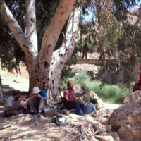 Jordan. Khirbet Iskandar, Alexandrium. Picnic lunch beside wadi.