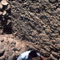 Jordan. Amman Citadel excavations, Fawzi Zayadine pointing to Hellenistic early Bronze Age stratum
